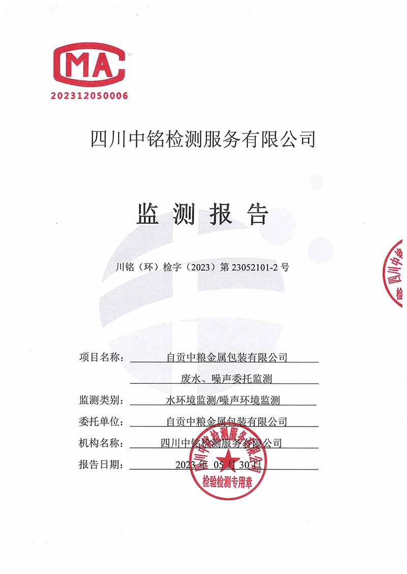 自貢中糧金屬包裝有限公司廢水、噪聲監(jiān)測報告